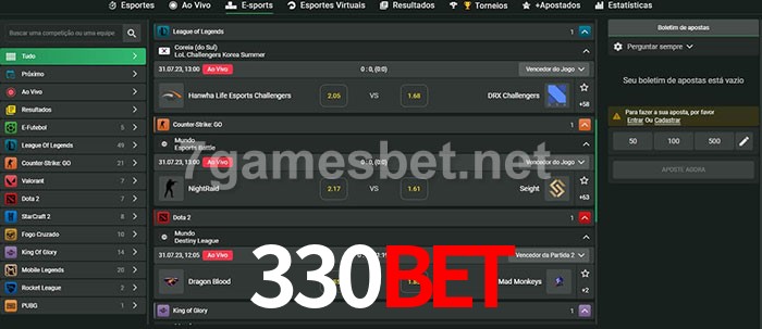 O 330Bet oferece uma grande seleção de opções de apostas em e-sports com probabilidades competitivas